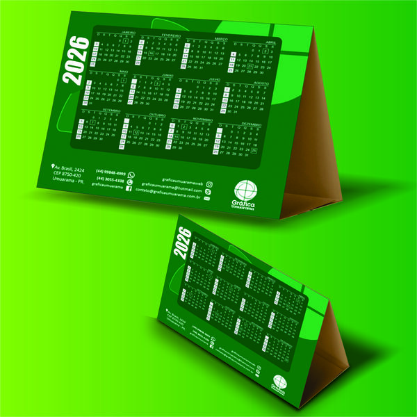 250 Calendários de Mesa 2026 - Simples - Triplex 300g - 200x290 mm - Verniz Total Frente - Gráfica Umuarama - Impressos Personalizados com a Melhor Qualidade!